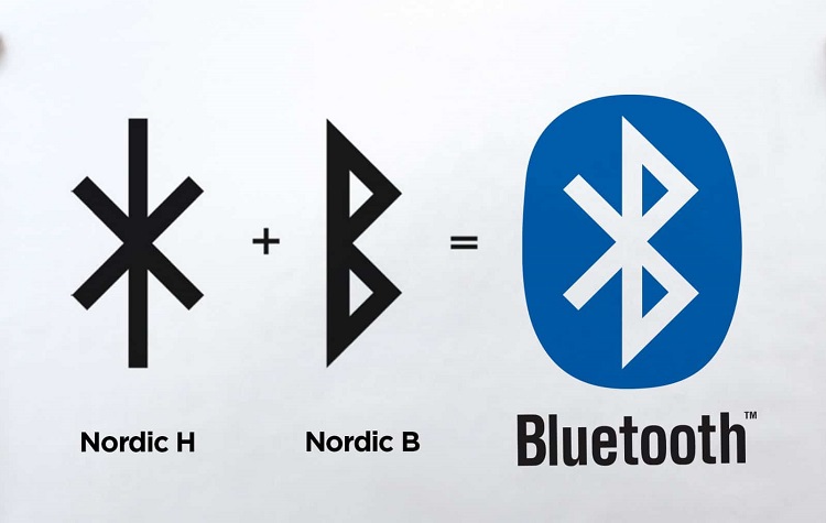 این استاندارد از روی نام یک پادشاه مشهور وایکینگ، هارالد بلوتاند گورمسون (به انگلیسی: هارالد بلوتوث گورمسون) که در قرن دهم، دانمارک و نروژ را متحد کرد، نامگذاری شد. لوگوی بلوتوث از حروف اولیه نام پادشاه هارالد بلوتوث (ᚼ و ᛒ) در زبان و خط رونی شمال اسکاندیناوی گرفته شده است. از آنجا که بلوتوث باعث اتحاد و اتصال دستگاهها به یکدیگر میشود، نام این تکنولوژی را بر اساس نام این پادشاه که متحدکنندهی قبایل دانمارک بوده است، انتخاب کردهاند.